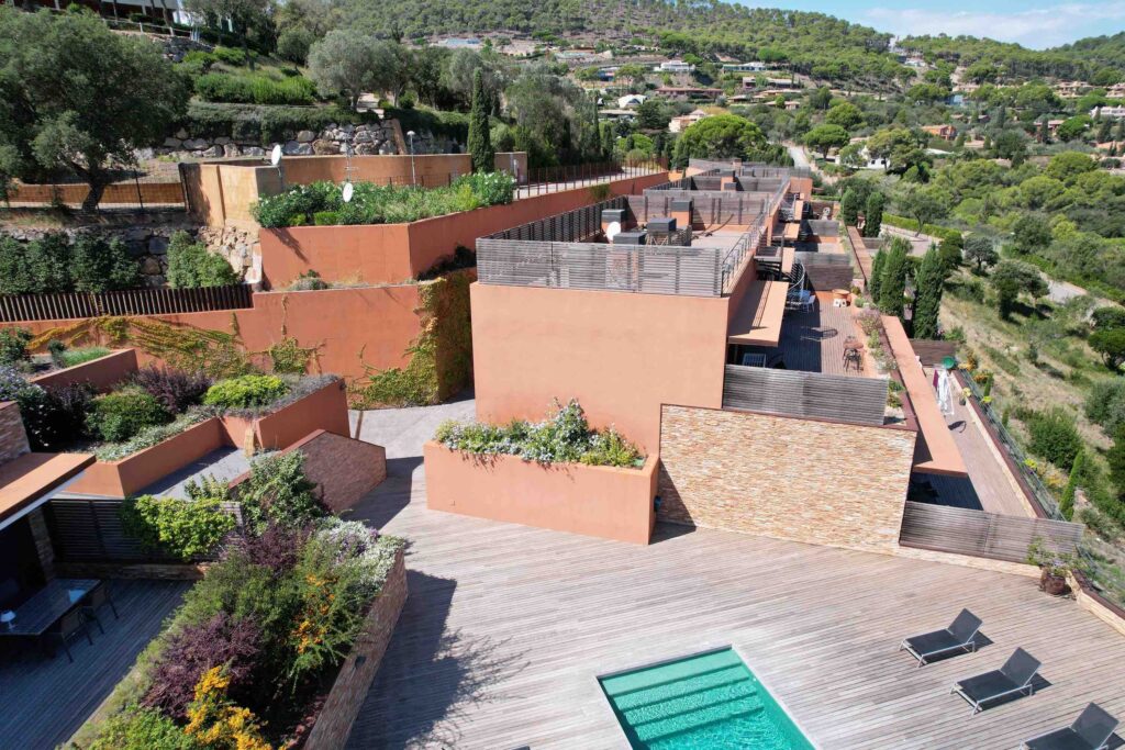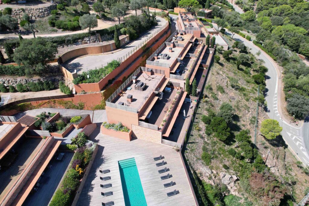 The materials used shall be of light earthy or sienna colours. In order to blend in with the surroundings, landscaping elements will be of great importance: Mediterranean plants, laurels, cypresses, arbutus cherries.