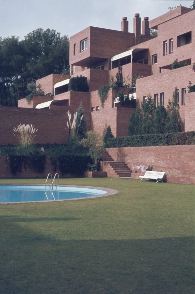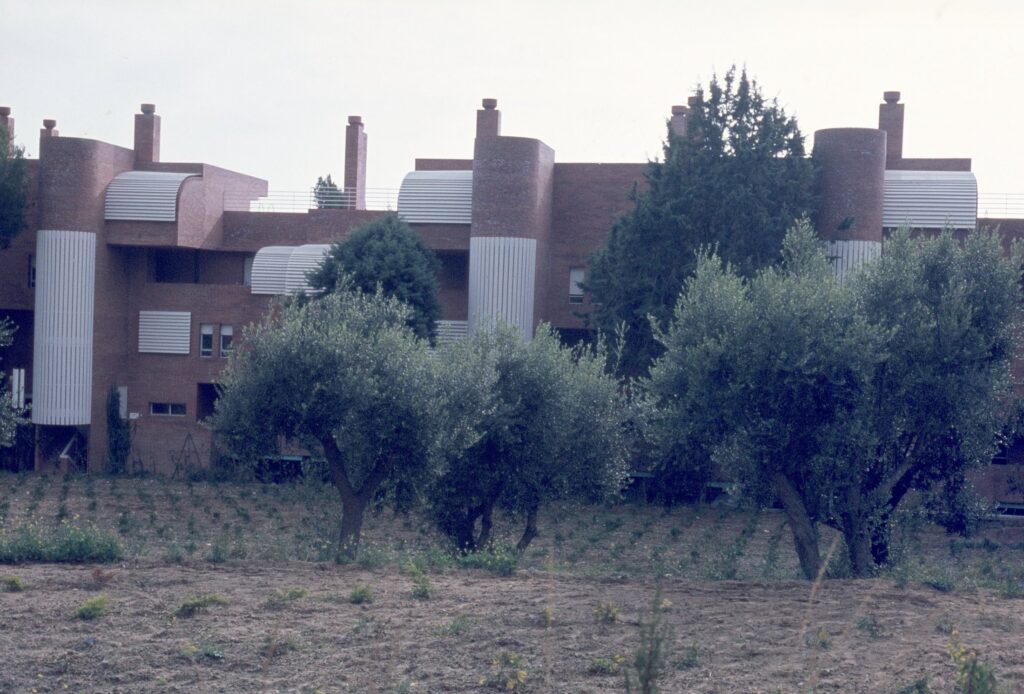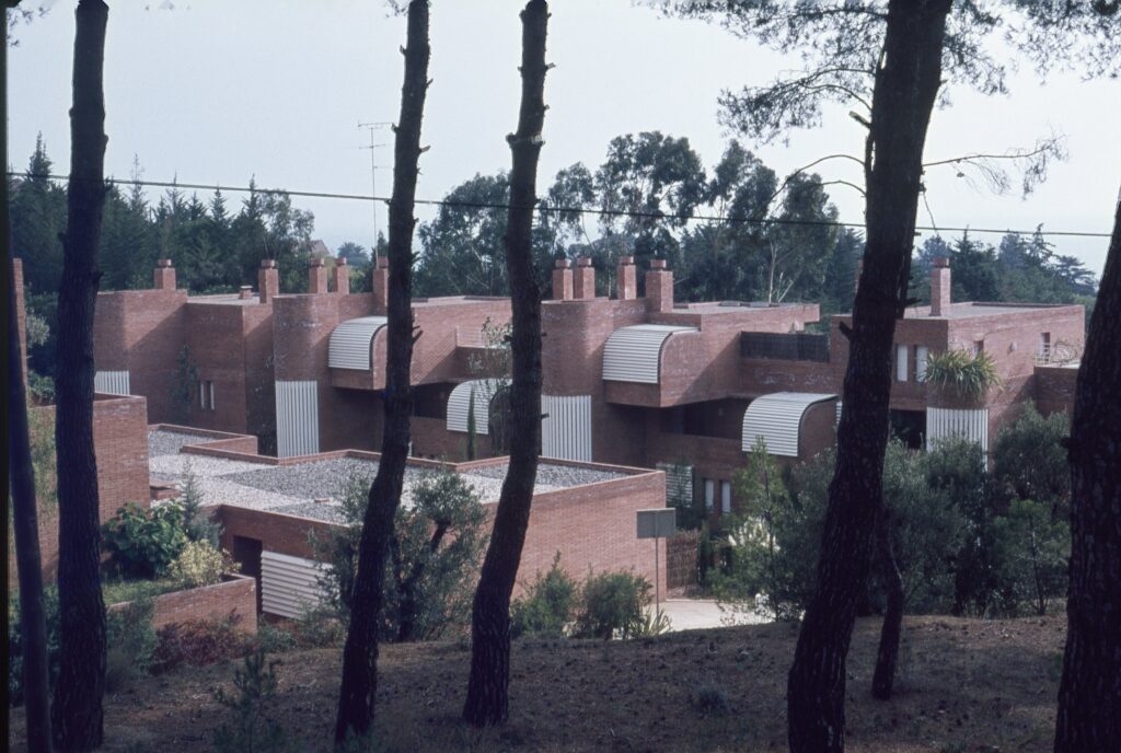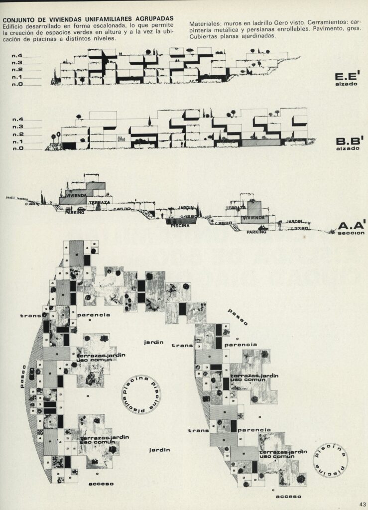 The project involves a group of flats located in San Vicenç de Montalt, about 400 m from the sea. The terrain is a V-shaped valley facing the sea with a 20% slope; the side slopes rise rapidly and are covered with dense vegetation characteristic of the area, including pines, cypresses, carob and olive trees. These characteristics conditioned the premises of the project, as integration with the surroundings was essential given the volume of the project. It was decided to break the project down into two buildings, as the slope allowed views to the one at the rear, and at the same time the two buildings were staggered to avoid a feeling of verticality. The staircases with the resulting recesses allowed planters to be placed on all levels of considerable dimensions, 2.5 x 2.5 x 1 in depth, in cases where the staircases were set back 2.50 m, and terraces of 5 x 5 x 1 m in cases where they were set back 5 m. The size of these planters allowed trees to be planted within them, recovering the existing vegetation in the building itself. In an attempt to recover as much of the landscaped areas as possible (despite the fact that the building occupies only 15% of the surface area of the site), the rear staggers were deployed on the terrain with a structural solution in cantilevers, which at some points reach 5 m in length, giving rise to landscaped slopes that enter the car park, leaving the rear part of the car park open to the garden.
