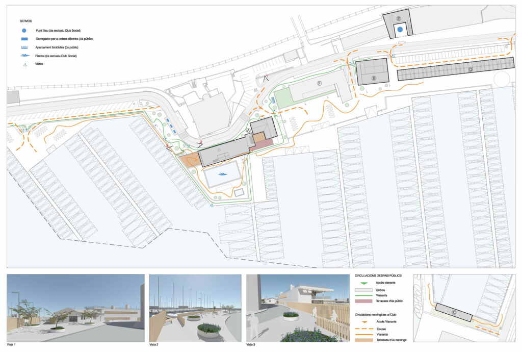 The commission is part of a tender process for the comprehensive refurbishment of the Club. The aim is to improve the integration of the CNAM into the port and the town of Arenys de Mar, permeating and integrating the different entities, and to structure and organise a Club that is the result of different successive interventions over the years with a more global vision to improve its functionality and architectural quality.