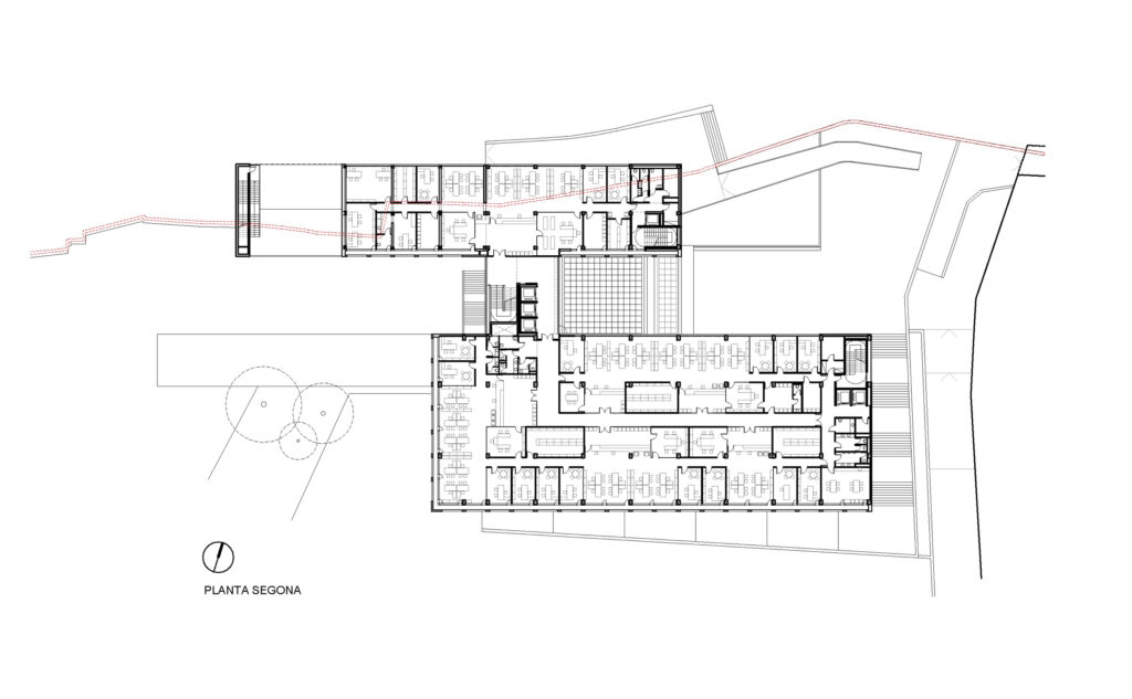 This new court building has been built on the southern edge of the old centre of Manresa, on the edge of the topographical drop, coinciding with the old city walls, which separates the city from the course of the Cardener river.