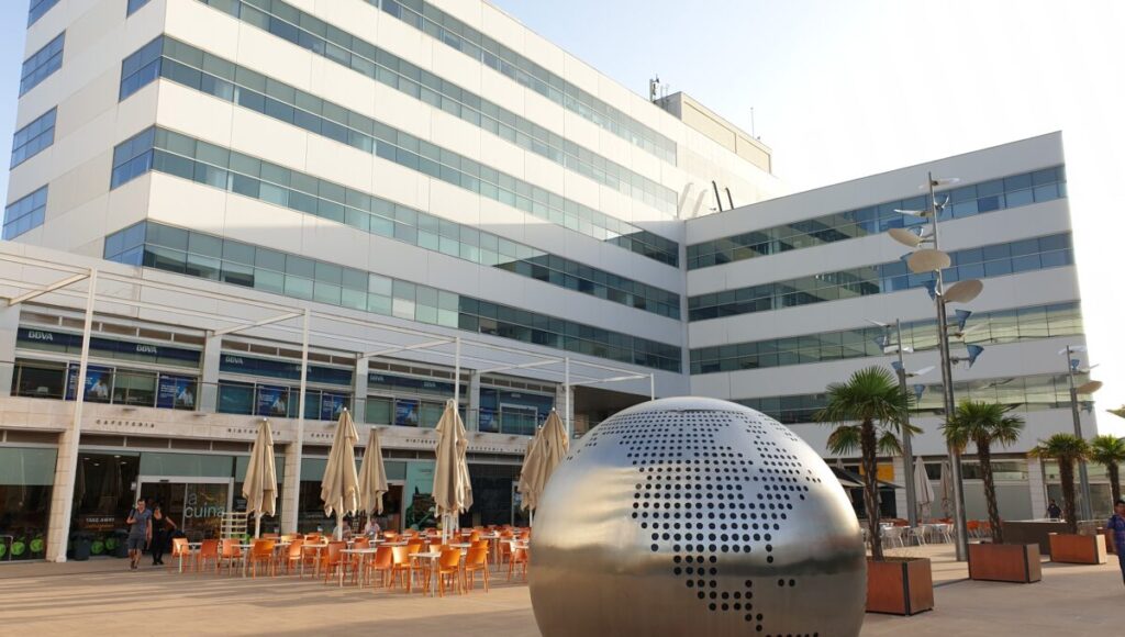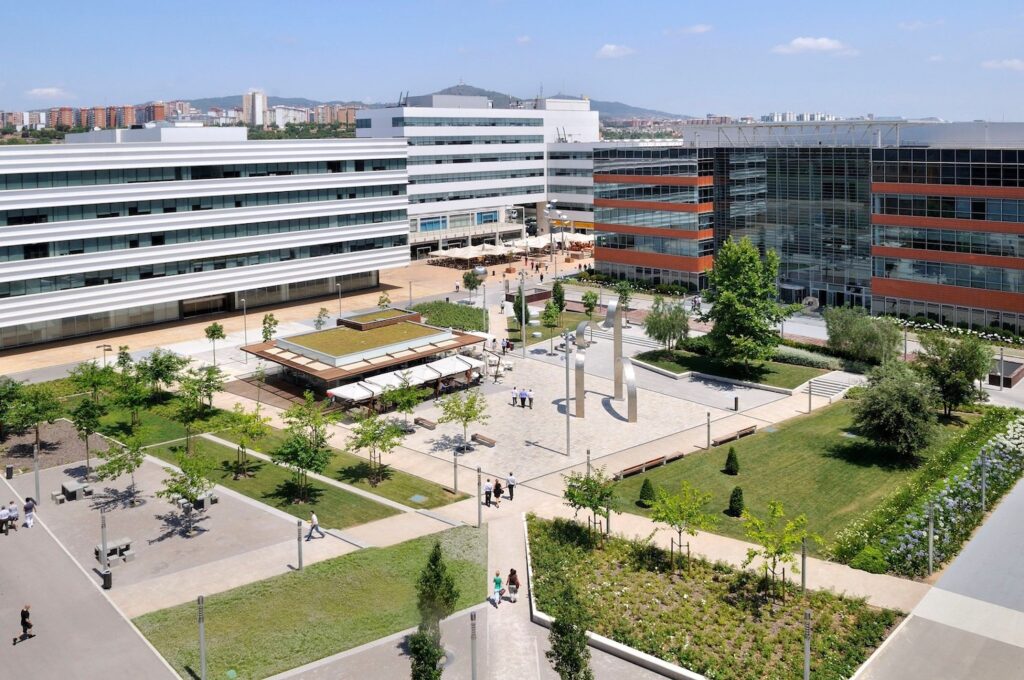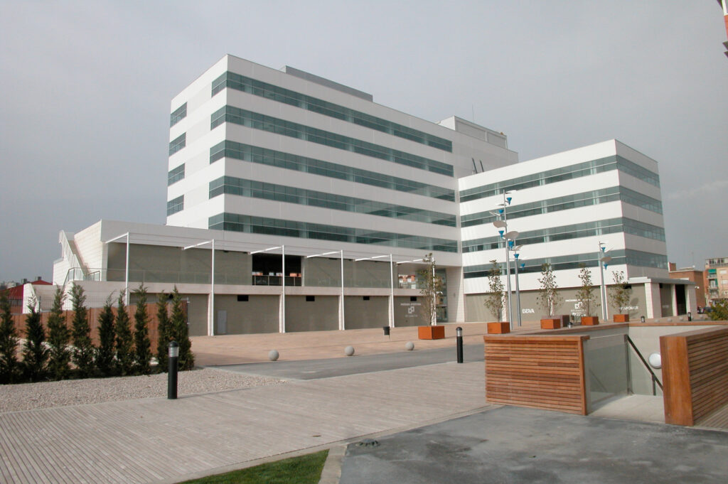 The building is located on plot B-1 of the WTC Almeda Park technology park in Cornellà de Llobregat, facing Tirso de Molina Avenue, with the main façades facing the Plaza de la Paz, a landscaped space.