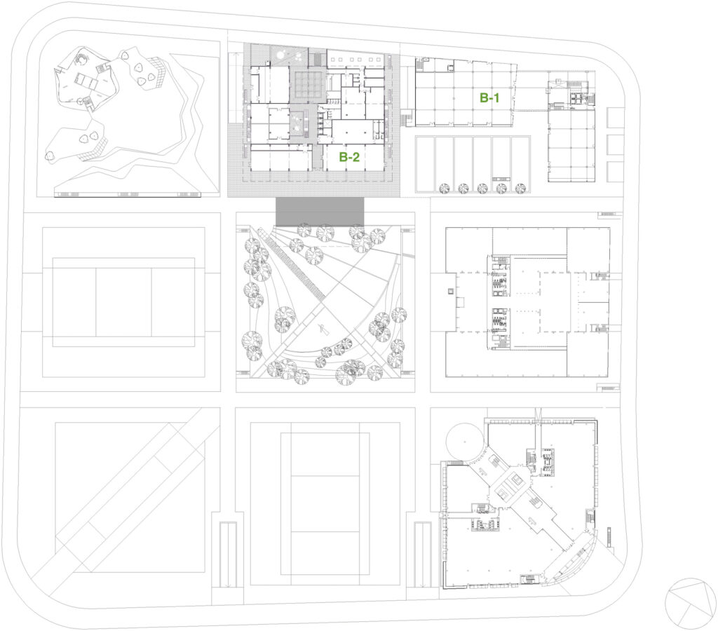 CTS arquitectes has also developed the Master Plan and planning of the complex. On the site of the former Pirelli factory, in an industrial area in decline and next to the Fira de Cornellà trade fair building, we were commissioned to develop the general planning of a tertiary care centre with all its services. Our work was to define the massing, circulations, uses and general image of the complex. The result was a set of 8 blocks around a park, where three of them with the most powerful massing act as a screen and background to the complex.