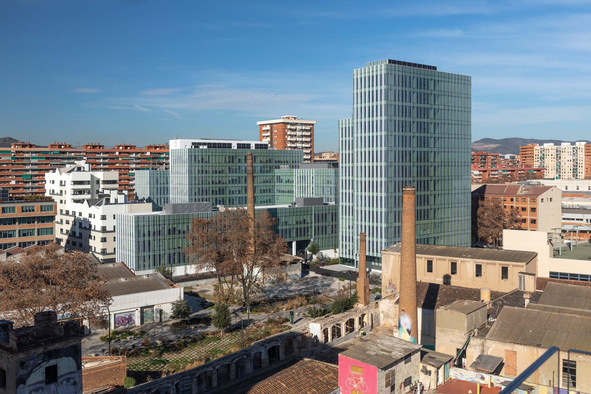 New construction of a group of office buildings for sale, grouped in a complex volume established by the existing regulations, with façades on C/Selva de Mar and C/Perú, and a tower of GF+13 with façades on C/Selva de Mar and C/Bolivia. Floors -1 and -2 are used as car parks.